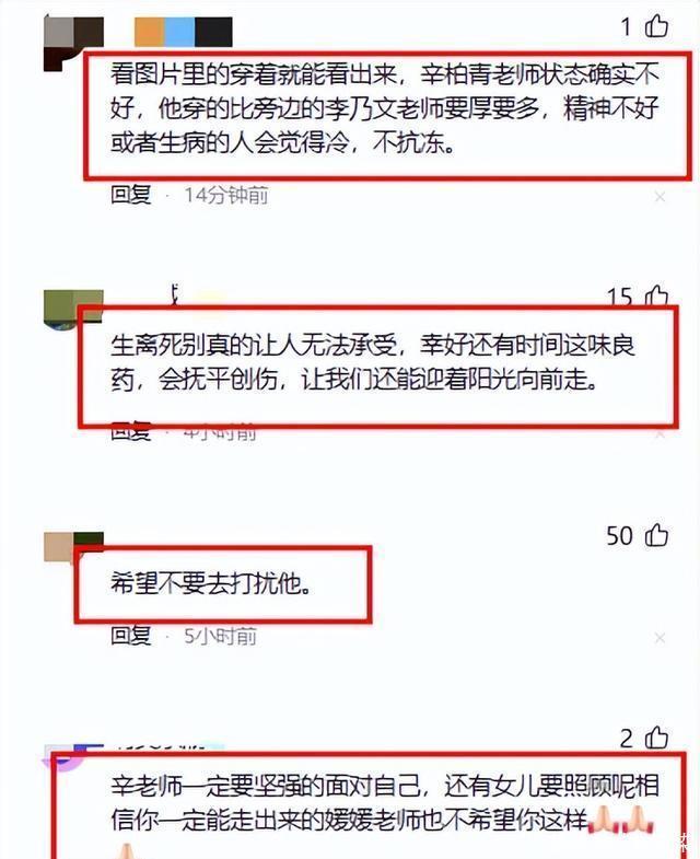 从最开始的封闭自己,到如今愿意和老友出门吃饭、散心,辛柏青也在努力地挣扎着往前走。 相信媛媛在天之灵,如果看到丈夫如今愿意走出悲伤,身边还有生前好友一个接一个的照顾着,想必也会安心很多吧! 他知道,自己还有女儿要照顾,还有朋友们的牵挂,不能一直沉浸在悲伤里。 不过,看到辛柏青如今这副模样,不少网友还是感慨道:“要是媛媛看到他这副模样该有多心疼”! 辛柏青的状态,让每个看到的人都忍不住心疼。 失去挚爱的痛,或许要用一辈子去消化。